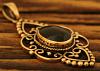 Ein Schmuck-Amulett mit einem großen, schwarzen Stein