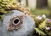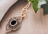 Ein zartes, mittelalterliches Amulett aus Bronze mit einem schwarzen Onyxstein