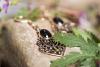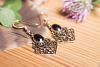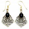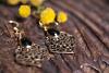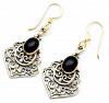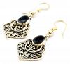 Mittelalterliche Ohrringe mit der Form eines Herzens und schwarzen Onyxsteinen.