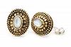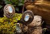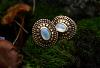 Bezaubernde, mittelalterliche Ohrstecker aus Bronze mit weißer Perlmuttmuschel