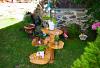 Das Teak-Blumenregal ist auch für den Garten oder deine Terrasse geeignet.