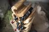 Die zarten Farbspiele der Maserung, machen das rustikale Wein-Regal zu einem angenehmen Blickfang.