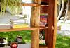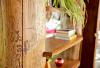 Das individuelle Regal besteht aus 2 Baumstämmen, die ausgehöhlt sind.