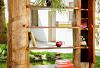Die Holzregale haben ein naturverbundenes und rustikales Design. Grobe Strukturen und Äste vollenden die einzigartige Form.