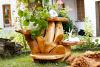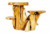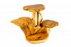 Die marmorähnliche Maserung des dauerhaften Teak-Wurzelholzes macht die Pflanzen-Blumenbank zu einem geheimnisvollen Blickfang.