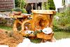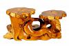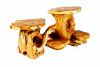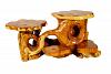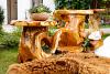 Die rustikale Blumentreppe ist aus nachhaltigem Teak-Wurzelholz.