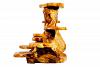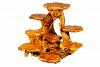 Elegantes Teak Blumen Regal mit warmer Cappuccino Maserung & einer weisen Eule