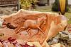 Aus edlem Teakwurzelholz in gekonnter Handarbeit hergestellt, mit einem wilden Ross.