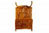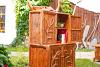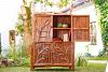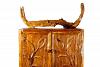 Ein majestätischer Holzschrank, gefertigt aus recyceltem Teakholz, verziert mit zarten Blattornamenten, die an Elbenranken erinnern.