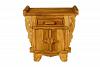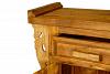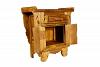 Liebevoll von Hand geschnitzte Ornamente zieren die seitliche Front wie Märchenranken aus einem alten Zauberwald. Jedes Detail erzählt seine eigene Geschichte – rustikal, verspielt und mit einem Hauch aus längst vergangenen Zeiten.