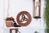 Das Triade-Holz-Bild wird von meisterhaften, keltischen Knoten umkreist, die auch tiefe Verbundenheit, Liebe und Freundschaft symbolisieren.