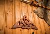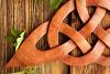 Eine beidseitig, von Hand geschnitzte Wanddeko mit einem keltischen Liebesknoten, aus Holz.
