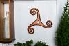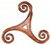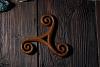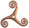 Die Triskele ist von beiden Seiten gleichermaßen schön geschnitzt, so daß du sie auch an einem Faden, frei beweglich, schweben lassen kannst.