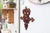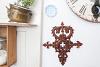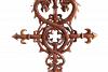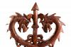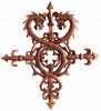 Zwei Drachen, die sich um ein gotisches Kreuz winden, als Wanddekoration.