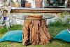 Der Wurzeltisch wurde kunstvoll aus recycelten Wurzelstücken zusammengesetzt.