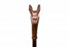 Handgearbeiteter Wanderstab mit einem Steinbockkopf, aus Soar Holz.