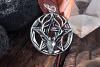 Ein massives Schmuck Amulett mit einem Hirschkopf auf einem Drudenfuß