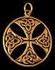 Die vier Seiten des gleichschenkligen Kreuzes sind keltische Knoten die in die Form des alten Erdkreuzes übergehen.