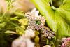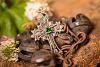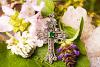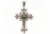Der Anhänger ist mit kleinen Markasitsteinchen und einem dunkelgrünen Kristallstein bestückt.