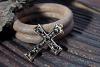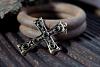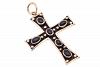 Ein mittelalterlicher Kreuz-Anhänger aus Bronze mit 6 nachtschwarzen Onyx-Steinen