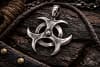 Ein Schmuck Amulett mit dem dem Symbol für gefährliche, biologische Stoffe.