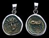Ein Replikat einer römisch-griechischen Münze aus Bronze, in einer Fassung aus echt 925 Sterlingsilber.