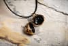 Das Medaillon kommt mit einem hochwertigen, schwarzen Stoff-Band zu Dir.