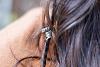 Einfach in den Zopf mitflechten oder Haargummi im Haar befestigen und danach die Perle drüber geben - gleiten lassen.