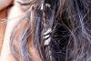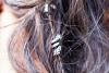 Einfach in den Zopf mitflechten oder Haargummi im Haar befestigen und danach die Perle drüber geben - gleiten lassen.