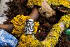 Einfach in den Zopf mitflechten oder Haargummi im Haar befestigen und danach die Perle drüber geben - gleiten lassen.