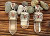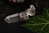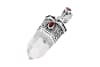Jedes Schmuckstück ist ein einzigartiges Unikat, mit einem echten Bergkristall und zwei Granatsteinen.