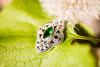 Der grüne Stein funkelt wie ein echter Smaragd.