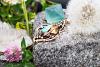 Geheimnisvoll ruht der Türkis, halb im Verborgenen, ein bronzenes Blatt verdeckt das edle Stück.