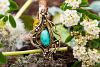Ein auffallendes, großes Schmuck-Amulett mit einem Türkisstein
