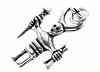 Odin hält magische, rituelle Gegenstände in seinen beiden Händen.