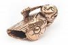 Der Schmuckanhänger ist wie eine kleine Figur gestaltet, das Band oder die Kette wird durch den Zopf der VALKYRJA gezogen.