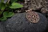 Das Knotenmuster windet sich um ein Wikinger-Symbol in der Mitte.