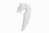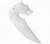 Ein handgeschnitzter Wolfskopf auf einem imitierten Wolfs-Zahn