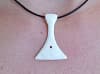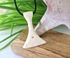 Der handgearbeitete Knochen-Anhänger kommt mit einem hochwertigen, schwarzen Stoff-Band zu Dir.