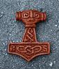 Ein Amulett mit einem Thorshammer, aus edlem Holz.