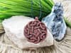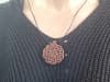 Ein großer Schmuck-Anhänger mit keltischem Knoten, aus edlem Holz.