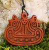 Ein Holz-Anhänger mit Odin und seinen beiden Raben Hugin und Munin.