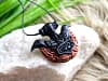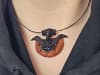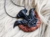 Dieser handgearbeiteter Schatz kommt mit einem hochwertigen, schwarzen Stoff-Band zu Dir.