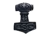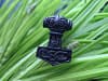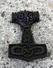 Ein schöner Thorshammer, der Mjölnir, aus schwarzem Holz von Hand geschnitzt.