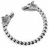 Ein starkes Schmuckstück aus Silber mit zwei Wolfsköpfen
