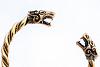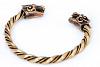 Sehr kunstvoller Armreif mit zwei detailverliebten Wolfsköpfen.