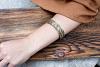 Den Armreif bitte immer über das Handgelenk anziehen, wenn möglich ohne zu biegen, um das Material nicht unnötig zu belasten.