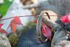 Hierbei den Armreif, wenn Du ihn in der Hand hältst, die beiden Enden nie nach rechts und links auseinander ziehen, sondern ein Ende nach vorne und das andere Ende zum Körper hin und wirklich nur so weit wie nötig aufbiegen.