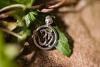 Ein kleines Om-Zeichen im Kreis, als Schmuck-Anhänger aus echt 925 Sterling Silber.