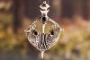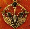 Ein großer, mittelalterlicher Schmuckanhänger mit drei schwarzen Onyxsteinen